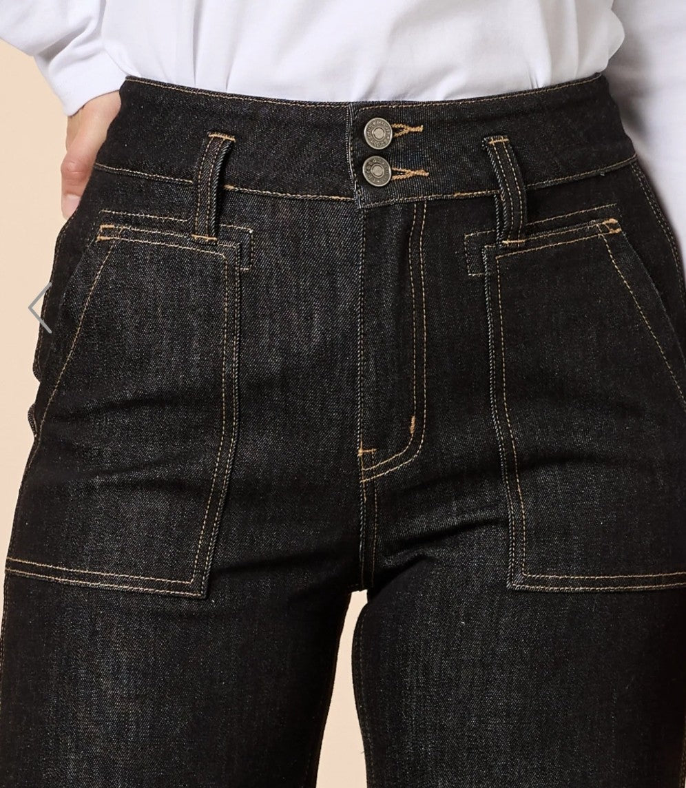 This is a very popular style of jean, and this colour is the new option for the new season... A gorgeous black wash with contrast stitching detail, it will definitely be a winner...